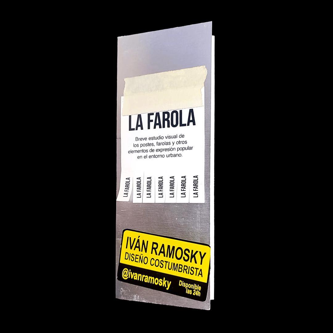Publicación impresa que recopila imágenes de farolas, postes y elementos callejeros de expresión, con un diseño de libro-objeto y ofrece un catálogo de testimonios populares que la gente va dejando en este soporte urbano, desde pegatinas de cerrajeros hasta mensajes enigmáticos.